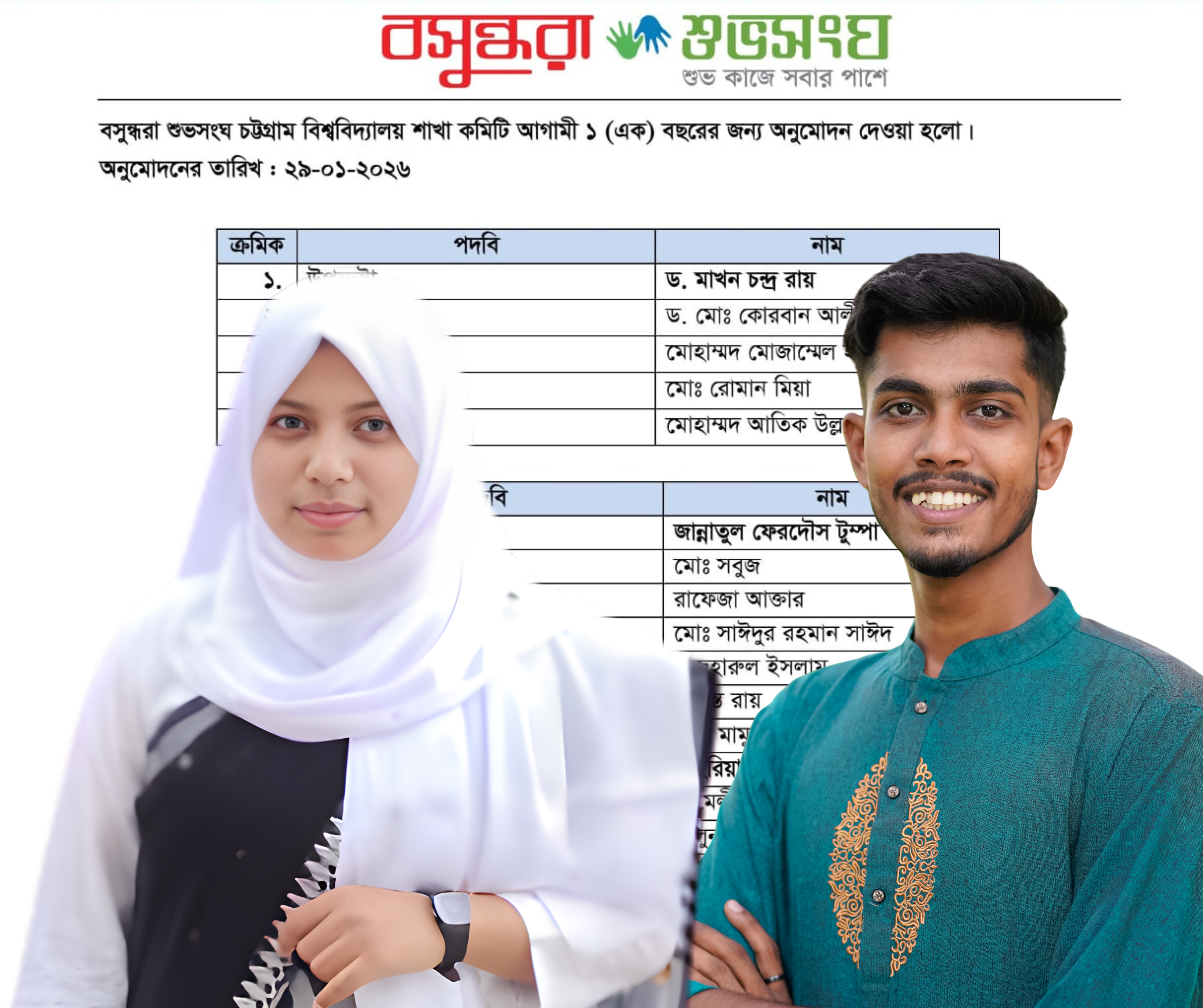The Basundhara Shuvosangho Chittagong University branch committee has been officially approved for a tenure of one (1) year, effective from January 29, 2026. The announcement marks a significant milestone for the organization’s presence at one of Bangladesh’s premier educational institution, featuring gender-inclusive representation across all levels.